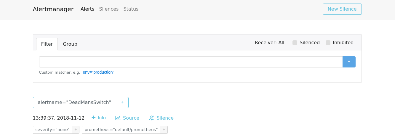 be able to navigate to localhost:9093 and see Alertmanager (pictured below).
